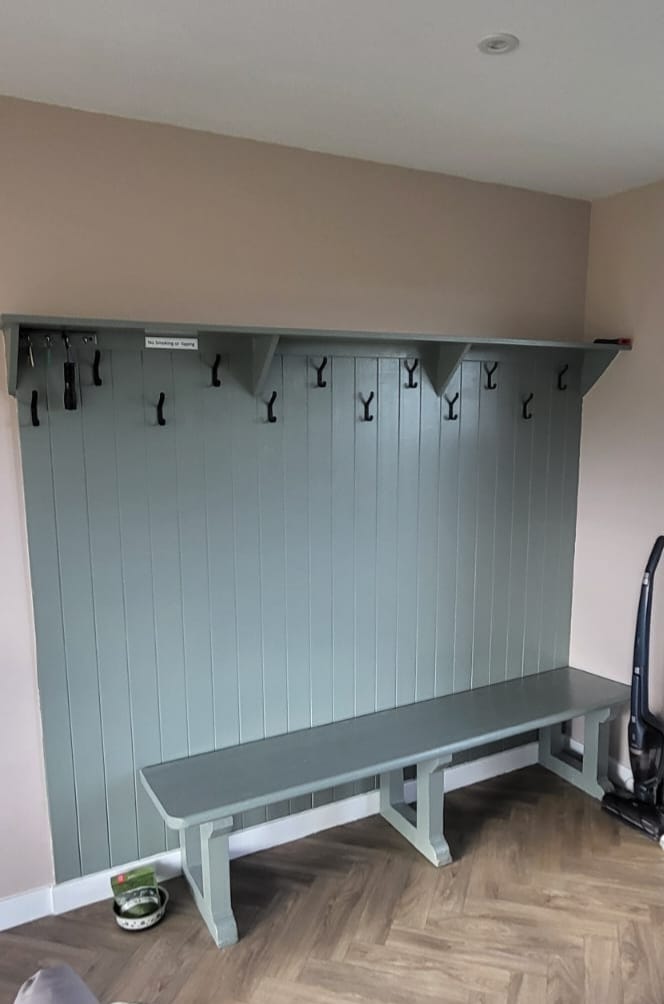 There is a cloakroom area with a bench and storage for shoes and coats. There is a seating area with views to the moor.